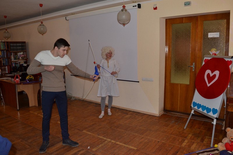 Амура Купідонівна за допомогою пострілу амурних стріл сформувала пари. Молоді люди познайомилися, презентували один одного та брали участь у конкурсній програмі: «Я подарую тобі зірку», пантоміма «Запрошую тебе на побачення», «майстер-клас» від хлопців «Допоможи своїй коханій». Родзинкою свята стала диско-вечірка від відділу абонемента, на якому пари виявили свою майстерність, винахідливість та креативність у виконанні різних стилів танцю, адже на заваді була повітряна кулька.